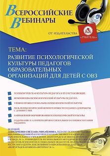 Вебинар Развитие психологической культуры педагогов образовательных организаций для детей с ОВЗ