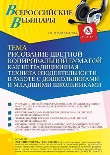 Вебинар Рисование цветной копировальной бумагой как нетрадиционная техника изодеятельности в работе с дошкольниками и младшими школьниками