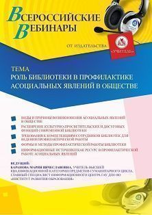 Вебинар Роль библиотеки в профилактике асоциальных явлений в обществе