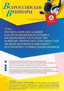 Вебинар Роспись морских камней как нетрадиционная техника изодеятельности и средство развития творческих способностей, мелкой моторики и цветового восприятия старших дошкольников