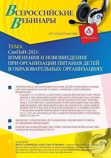 Вебинар СанПиН-2021: изменения и нововведения при организации питания детей в образовательных организациях