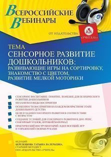 Вебинар Сенсорное развитие дошкольников: развивающие игры на сортировку, знакомство с цветом, развитие мелкой моторики