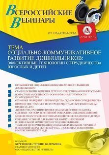 Вебинар Социально-коммуникативное развитие дошкольников: эффективные технологии сотрудничества взрослых и детей