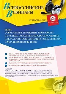 Вебинар Современные проектные технологии в системе дополнительного образования как условие социализации дошкольников и младших школьников