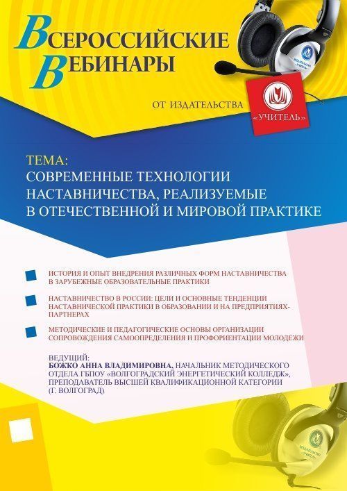 Вебинар "Современные технологии наставничества, реализуемые в отечественной и мировой практике"