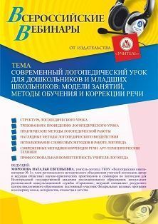 Вебинар Современный логопедический урок для дошкольников и младших школьников: модели занятий, методы обучения и коррекции речи