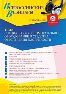Вебинар Специальное (вспомогательное) оборудование и средства обеспечения доступности, порядок их эксплуатации, включая требования безопасности; ответственные за использование оборудования, их задачи