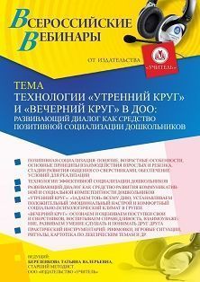 Вебинар Технологии “Утренний круг” и “Вечерний круг” в ДОО: развивающий диалог как средство позитивной социализации дошкольников