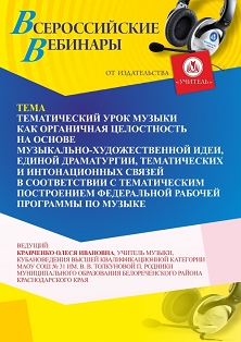 Вебинар Тематический урок музыки как органичная целостность на основе музыкально-художественной идеи, единой драматургии, тематических и интонационных связей в соответствии с тематическим построением федеральной рабочей программы по музыке
