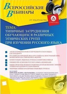 Вебинар "Типичные затруднения обучающихся различных этнических групп при изучении русского языка"