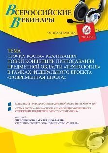 Вебинар “Точка Роста” реализация новой концепции преподавания предметной области “Технология” в рамках федерального проекта “Современная школа”