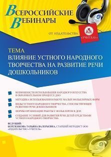 Вебинар Влияние устного народного творчества на развитие речи дошкольников