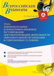 Вебинар Законодательное и нормативно-правовое регулирование документирования деятельности образовательной организации в современных условиях