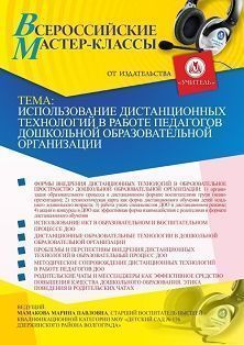 Всероссийский мастер-класс Использование дистанционных технологий в работе педагогов дошкольной образовательной организации